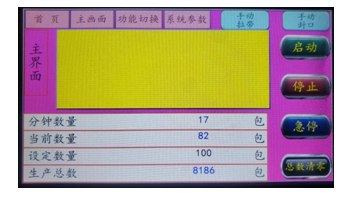 如需停機(jī),隻需按一下主頁麵“停(tíng)止”按鈕(niǔ),或操作麵板的停止按鈕,機器包完當前包後停止運行。